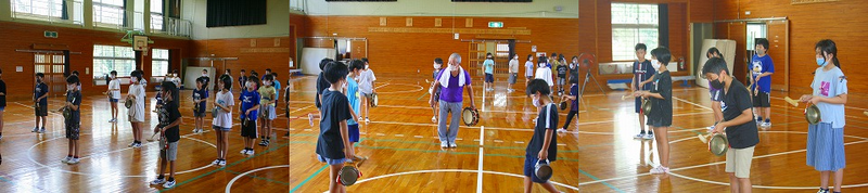 7月19日(月) 運動会でも披露する予定の「鉦踊り」の練習が今年も始まっています。暑い日々が続いていますが、熱中症にも気を付けながら5年生の児童は必至に練習に取り組んでいるところです。「鉦踊り」は鉦を打ち鳴らすのと同時に、複雑な足の動きもあり、上達するにはまだまだ時間がかかりそうですが、運動会では5年生の子ども達の雄姿をお見せすることができることと思います。