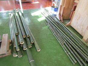 ・なかなか上手ですね! ・立てる竹を切ります。中学生、ありがとう! ・ 親子で協力して作ります。