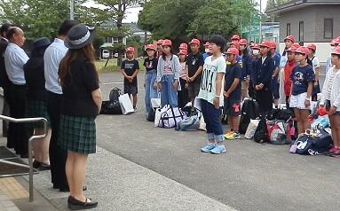 ・児童代表の言葉は1年生です。担任の先生が見張って?います(^^;) ・元気よくね! ・選手宣誓は両団の小中の団長です!