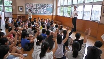 ・いよいよ始まります。 ・プレゼンを使っての説明です。 ・3、4年生も真剣に聴いていますね。
