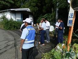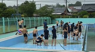・まずは浅い方からです。 ・消防団登場! ・だんだんと排水口に近づきます。