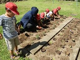 ・さあ、植えましょう!丁寧に扱いましょう。 ・間隔を考えてね。 ・水をやりましょう!
