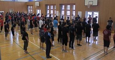 ・中学校の体育の先生からのお話です。「がんばろう!」 ・ラジオ体操です。1年生はうまくできたかな?