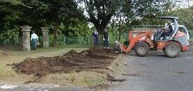 ・はじめのあいさつ等です。 ・土の除去です。跡地は駐車場にする予定です。