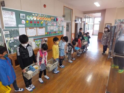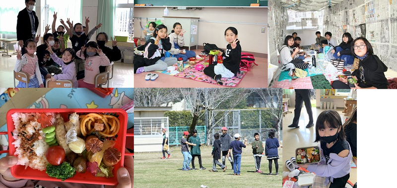 3月5日(金) 今日は校内で行われる「お別れ遠足」。昨夜からの雨で午前中は運動場もぬかるんでいましたが、午後からは日差しがもどり、運動場で元気よく遊び回る子どもたちの姿が見られました。また、今日は「弁当の日」も兼ねており、昼食時間には「おにぎりを作ったよ。」「ハンバーグを作ったよ。」と、とてもうれしそうに自分で作ったお弁当を頬張っていました。