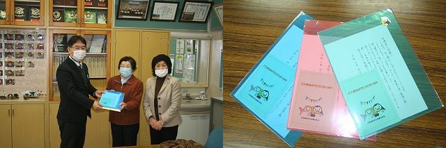 3月9日(火) 小林市地区更生保護女性会より来年度の令和3年度新入学児童へ、温かいメッセージと共に記念品をいただきました。ありがとうございます。たくさんの地域の方に見守っていただいている紙屋小の子どもたち。大変ありがたいことです。