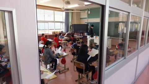 1月21日(木) 本日行われる予定であった紙屋中学校の入学説明会。新型コロナウイルス感染拡大防止のため規模を縮小し、紙屋中の先生をお招きして、6年生に中学校生活についてのお話をしていただきました。