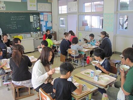 教室では、親子での制作活動や異学年との交流、体育など、座って授業を受けている姿とは違った子どもの様子を参観していただくことができました。給食時間には、1年生の保護者を対象に「給食試食会」も行い、食育の大切さについても理解を深めていただくなど、充実した1日となりました。