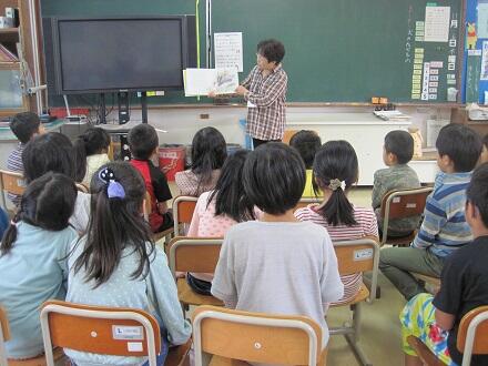 11月6日(木)2学期最初の「ハートタイム」(全校読み聞かせ)を行いました。この日は7名の読み聞かせボランティアの方々に来ていただき、2学年ごとに読み聞かせをしていただきました。