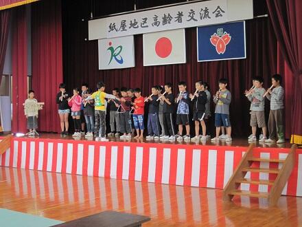午前中には、高学年の子どもたちと高齢者の方とが一緒に避難する訓練(地震想定)を行いました。午後には、子どもたちもメンバーの太鼓の披露や3・4年生の合唱、6年生の作文も発表しました。