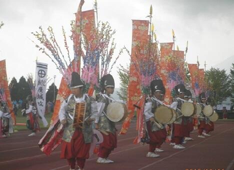 11月23日(月)勤労感謝の日。例年、地元の高妻神社のほぜまつりが開催されます。このお祭りでは、毎年、紙屋小4~6年生が「城攻め踊り」を奉納しています。天気が心配されましたが、朝早くから保護者の方々に御協力いただいて公民館で着付けを行い、太鼓や鐘の音を響かせながら神社までの道のりを歩いて行きました。神社では、神事の後に踊りの奉納。駆けつけた地元の皆さんにも喜んでいただきました。城攻め踊りのほか、舞や太鼓にも子どもたちが出演し、祭りを盛り上げました。