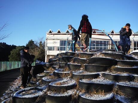 1月20日(水)強い寒波の影響で紙屋にもうっすらと雪が積もりました。昨夜まで突風が吹く荒れた天気でしたが、今朝は晴天。登校した子どもたちが外に出て雪遊びを始めました。今年は、寒さが感じられない暖冬だったため、より寒さを厳しく感じますが、子どもたちは、相変わらず歩いて登校してみんな元気!