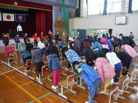 5年生以外の子どもたちも真剣に耳を傾け、来賓の方からは「小さい子達も寒い中我慢して、最後の校歌の大きな歌声を聞いたときは感動した。」とおっしゃっていただきました。
