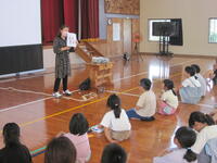 当日は、一緒に柔軟運動をした後、「カローリング」「スクーターボード」「ラダーゲッター」をしました。最後に全校児童でフリスビー型のドッジボールであるドッジビーで対決しました。様々な交流ができ、楽しいイベントになったと思います。