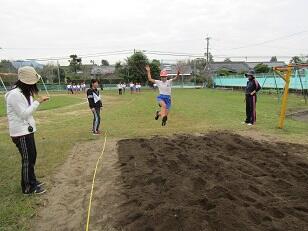 ・走り幅跳びです。踏切線から出ないように! 前じゃなく上へ飛ぶ感じで・・。 「おりゃ~!」と声を出してもねぇ~(^_^;)