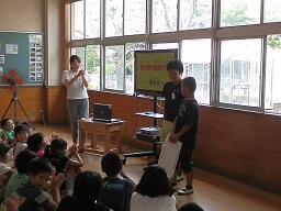 子どもたちは運動会の練習の後でも、暑い中でもしっかりと先生のお話を聞くことができていました。