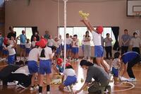 子どもと保護者を交えたチームを作り、協力し合って玉入れを行いました。