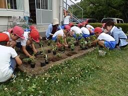 このあと、みんなで苗をうえました。大きくなあれ!と願いながら植えました。
