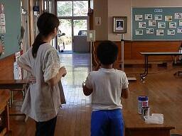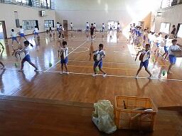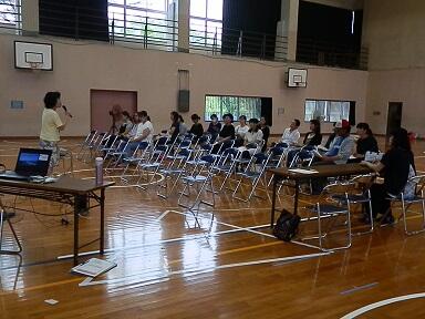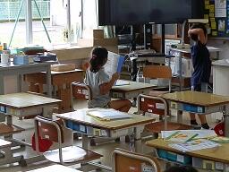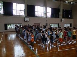 全校集会を開き、校長先生と生徒指導の先生から、夏休みの過ごし方などについてお話がありました。その後、保健室の先生から夏休みの宿題!が出されました。(え~っ!)