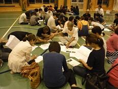 その後、今年の6年生が受けた全国学力調査の問題を解きました。頭をかしげる、抱え込む参加者もいました。このような問題を解く力が求められていること、そのために家庭での学習に必要なことを参加者全員で確認しました。
