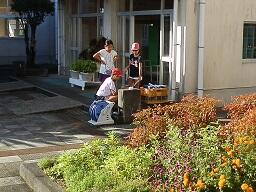 【環境委員長の話】 【環境委員会からの諸注意】 【1年生は植え込みの清掃】