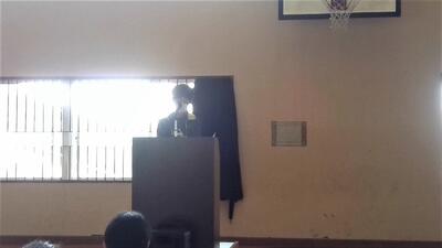 始業式に先立ち、1名の転入生を紹介しました。