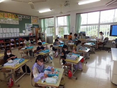 2年生は音読劇→生活科町探検の発表→合奏 でした。