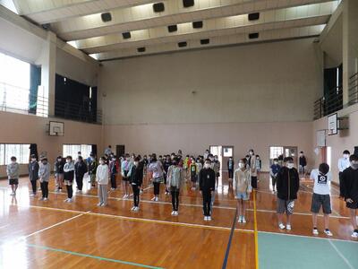 参集して体育館で実施することができました。