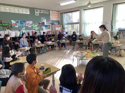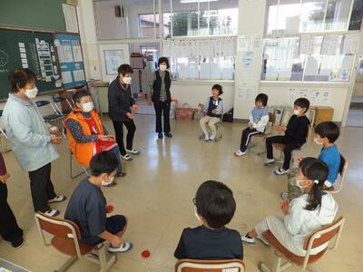 1年生は昔の遊びをゲストテイーチャーと共に楽しみました。