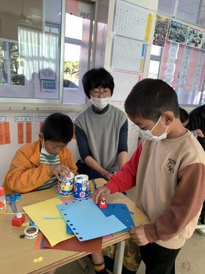 2年生は、保護者と一緒に手作りおもちゃで楽しみました。