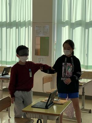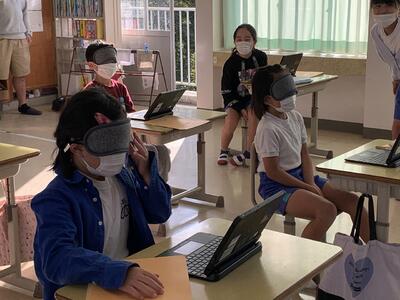 3年生は福祉学習の一環でアイマスク体験とパラスポーツを行いました。