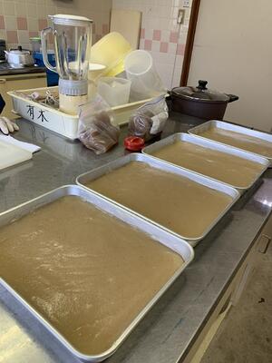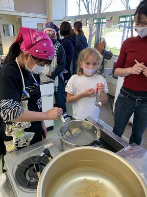 5年生は、こんにゃく芋を使った手作りこんにゃく作りに挑戦しました。
