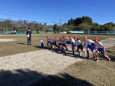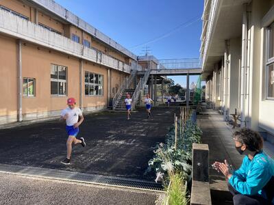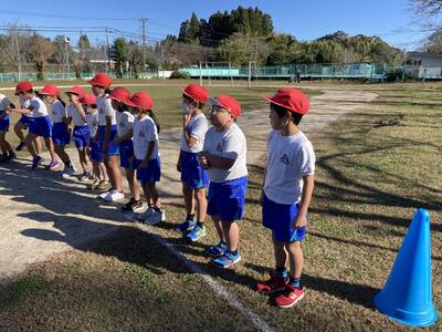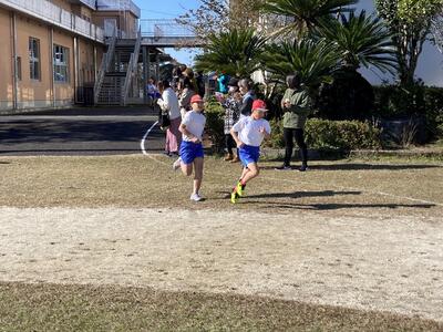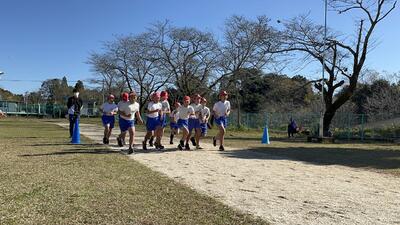 雲一つない冬空の下、元気に学校敷地内を走りぬきました。