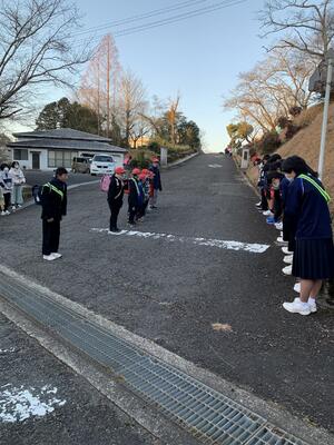 冬の早朝より、恒例の小中合同あいさつ運動を実施しました。