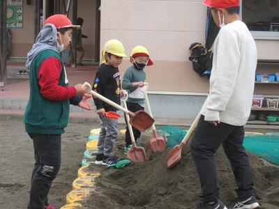 紙屋保育園のご協力の下、園児と5年生は楽しく