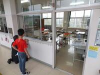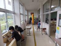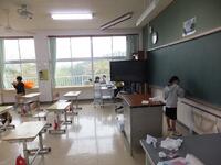 今から使う教室をみんなできれいにしています。