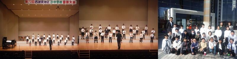 11月15日(金) 西諸県地区小中学校音楽大会が小林市文化会館で行われました。紙屋小学校からは3・4年生25名が参加し、合唱「宝島」と合奏「テキーラ」を披露しました。「一徳祭」のときよりも、さらに腕を上げた合唱と合奏で練習の成果を十分に発揮することができました。