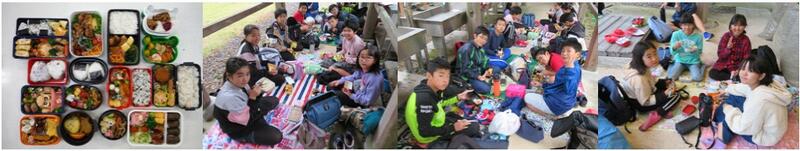 弁当の日でもあった秋の遠足。お昼には美味しそうなお弁当を前に、子どもたちの楽しそうな笑顔があふれていました。