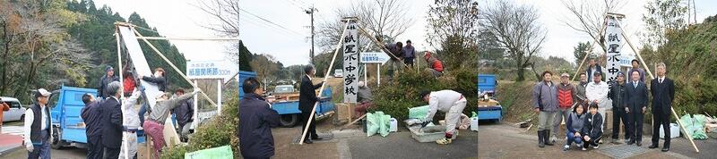 12月7日(土) 国道268号線から紙屋小学校入る道路脇に「紙屋小・中学校」と大きく書かれた案内看板を「紙屋一徳まちづくり協議会」に設置していただきました。設置には紙屋小、紙屋中のPTA役員の皆様にもご協力いただき、無事に作業を終えることができました。