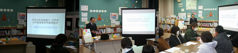 2月18日(火) 紙屋小学校・紙屋中学校合同の家庭教育学級閉級式が本校の図書室で行われました。紙屋中学校の松原宗一校長に「教職34年間の歩み」という演題でご講話をいただき、本年度の家庭教育学級を締めくくりました。