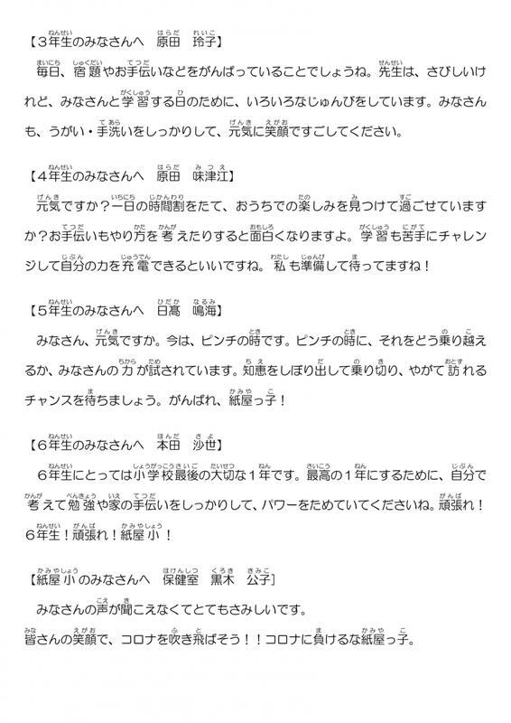 まだまだ、予断を許さない状況が続きますが、やはり子どもたちあっての紙屋小学校です!令和2年度もどうぞよろしくお願いします。