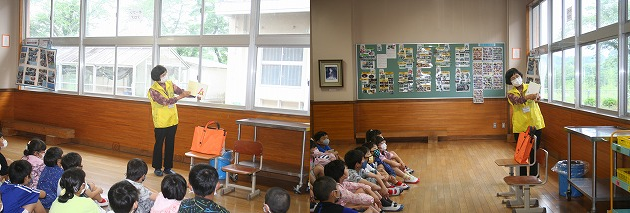 1年生教室では、ドイツにいる動物を紹介してくださり、