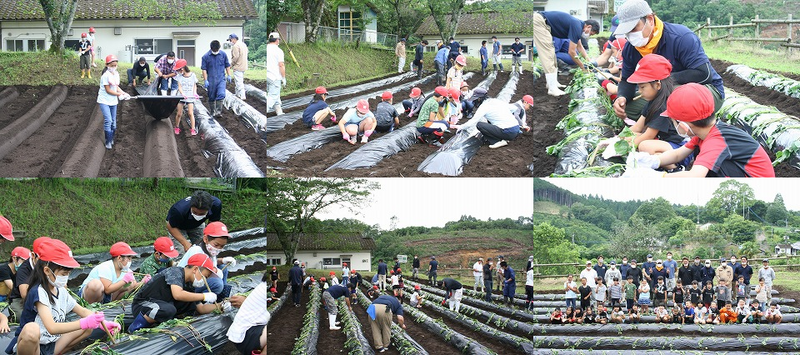 6月8日は1年生から3年生が参加した芋の苗植えがありました。