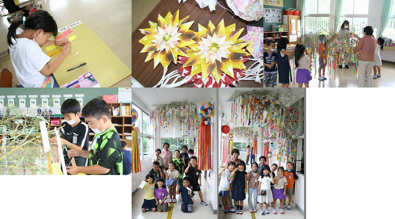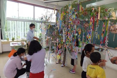 6月28日の3校時と4校時に七夕の飾りつけを1年生、2年生が