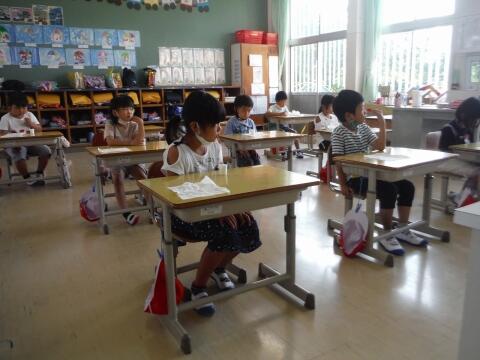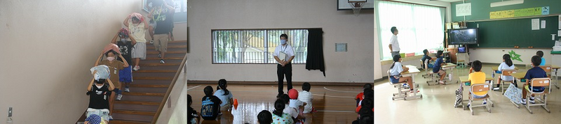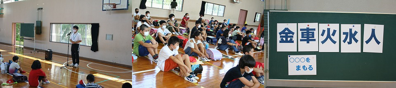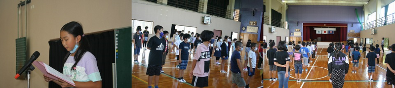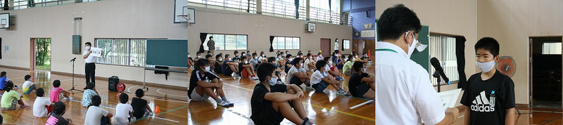 新型コロナウィスル感染症対策のため、体育館では、人と人との間隔を十分にとり、換気も行うなど、いつもとは違った形での始業式となりました。しかし、長かった休みを終え、久しぶりに学校に戻ってきた子どもたちは笑顔がいっぱいでした。