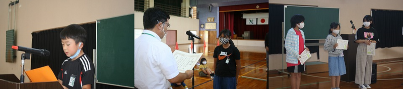 また、集会では先日行われた持久走大会で各学年1位になった児童への表彰とメダル授与も行われました。