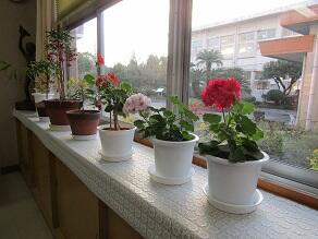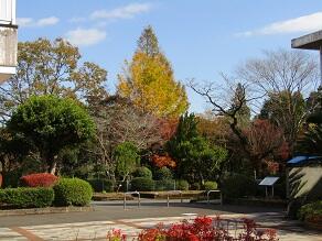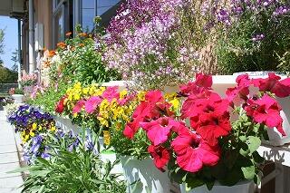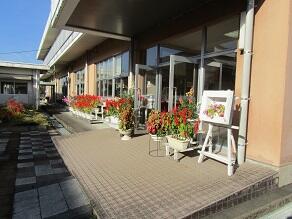 ・窓口にも花があります。     ・玄関先の花々です。きれいですね。        ・一徳園も紅葉しています。