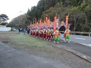 11月23日(金) この日は「勤労感謝の日」の祝日でした。この日には各地で農作物の収穫に感謝するお祭が行われています。紙屋地区では高妻神社でほぜ祭りがありました。紙屋小からも4~6年生の希望者による「城攻めおどり」を奉納しました。紙屋地区公民館から神社まで衣装を身に付け、歩いて行きました。国道沿いでは太鼓や鉦を打ち鳴らしました。通行する車の方々の目にも子どもたちの姿が鮮やかに見えたと思います。神社に着いてから神事のあと奉納しました。その後、舞や神楽、そして、子どもたちが楽しみにしていた「せんぐまき」(小中の校長先生、教頭先生4人がまきました(^o^))があり、お菓子やお餅をたくさん拾っていました。今回、「中山間盛り上げ隊」という方々がいらっしゃって、子どもたちの移動の際の交通安全や矢旗が引っかからないようにしてくださいました。ありがとうございました。地域の伝統行事であるほぜ祭りに参加したり、見に行ったりすることは地域のことを知ることになったり、地域の方と触れ合ったりする貴重な機会です。いつまでも地域のことに想いを馳せる子どもたちになって欲しいと思います。今回も保護者の方々には着付けから移動、神社でのお世話などたくさんお世話になりました。また、おでんや甘酒などをふるまってくださった地域の方々、美味しくいただきました。皆さん、本当にありがとうございました。
