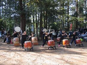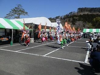・夢見太鼓の奉納です。かっこいいね! ・鹿児島から来られ、舞を奉納された方です。  ・盛り上げ隊の旗とメンバーの方です。