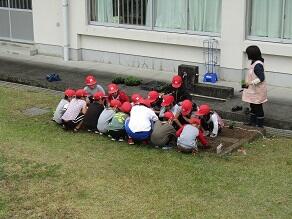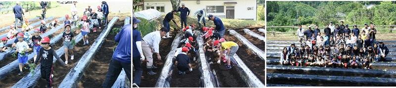 5月23日(水)、1~3年生は2・3校時にイモの苗植えがありました。JA青年部の方々に来校していただき、サツマイモ「紅はるか」をみんなで植えました。イモ植えの経験のある子、初めての子、それぞれでしたが、青年部の方々に指導していただきながらみんなで楽しくイモを植えることができました。JA青年部の方々には草払いや畑を耕すところからマルチ張りまで、早朝から事前の準備をしていただきました。ありがとうございました。秋の収穫が楽しみです。
